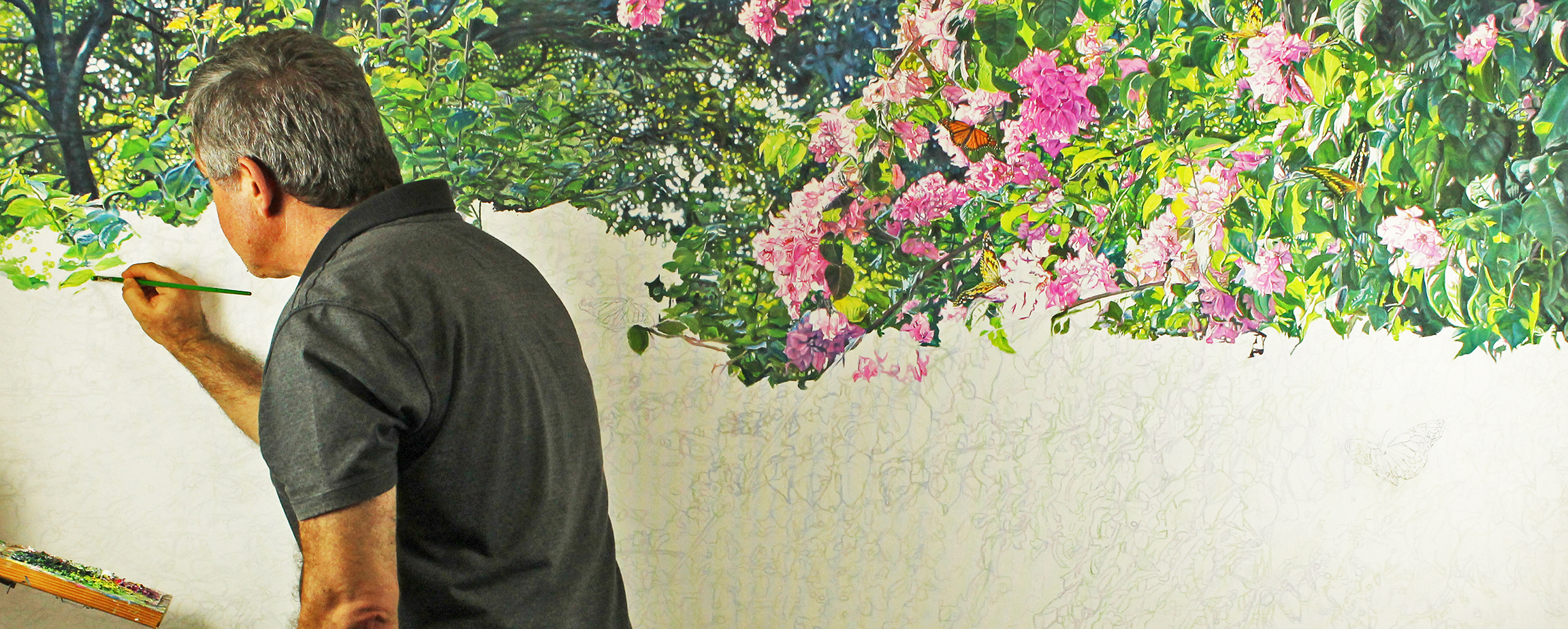 Procuro visitar florestas onde a natureza encontra-se mais preservada, nascentes, locais de difícil acesso, em que a luminosidade seja bem natural com incidência da luz do sol na vegetação ou água, sendo esta uma das característica principais que registro em minhas pinturas. A escolha do local adequado pra servir como tema de minha pintura é avaliado pelo equilíbrio técnico, simplicidade, beleza e principalmente pelo astral que emana, que sentimento despertará ao observador. Quando decido, fotografo registrando diversos ângulos deste local, defino o cenário ideal que será a minha referência.