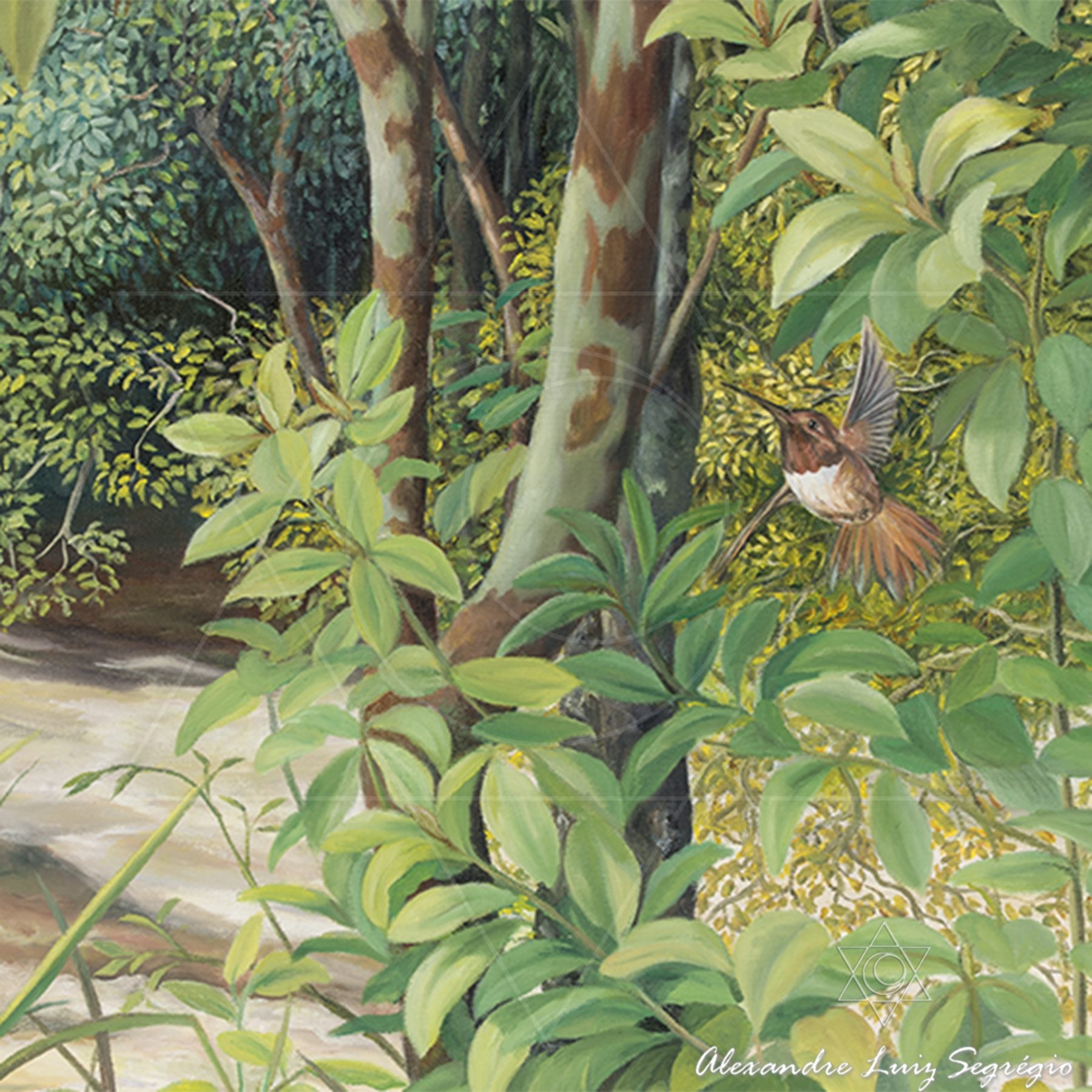 Uma pintura a óleo sobre tela, inspirada nos riachos da cidade mineira de Bueno Brandão.
