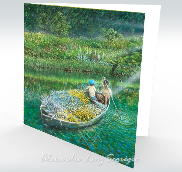 Cartão 20 x 20 cm – aberto 20 x 40 cm, Série Encantos. Colheita, imagem de uma pintura do artista visionário Alexandre Luiz Segrégio.