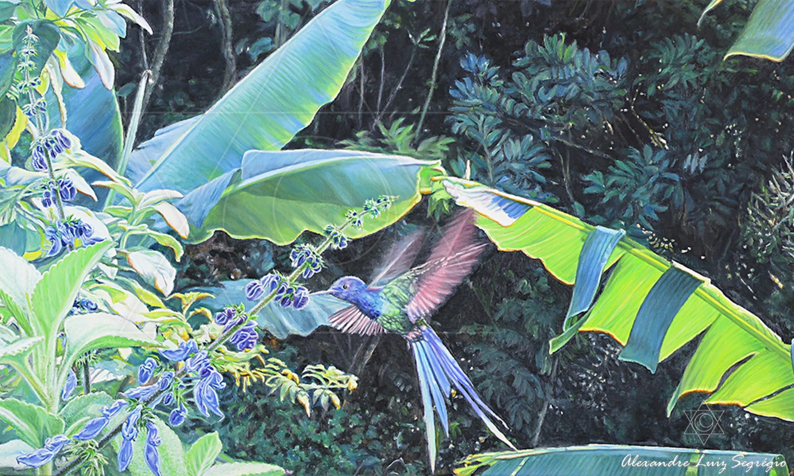 Pintura hiper-realista de uma vegetação comum, que através do desenho minucioso, cores com pinceladas precisas o artista retrata o encanto da luz da manhã, despertando a magia do dia e das criaturas que embelezam este momento!